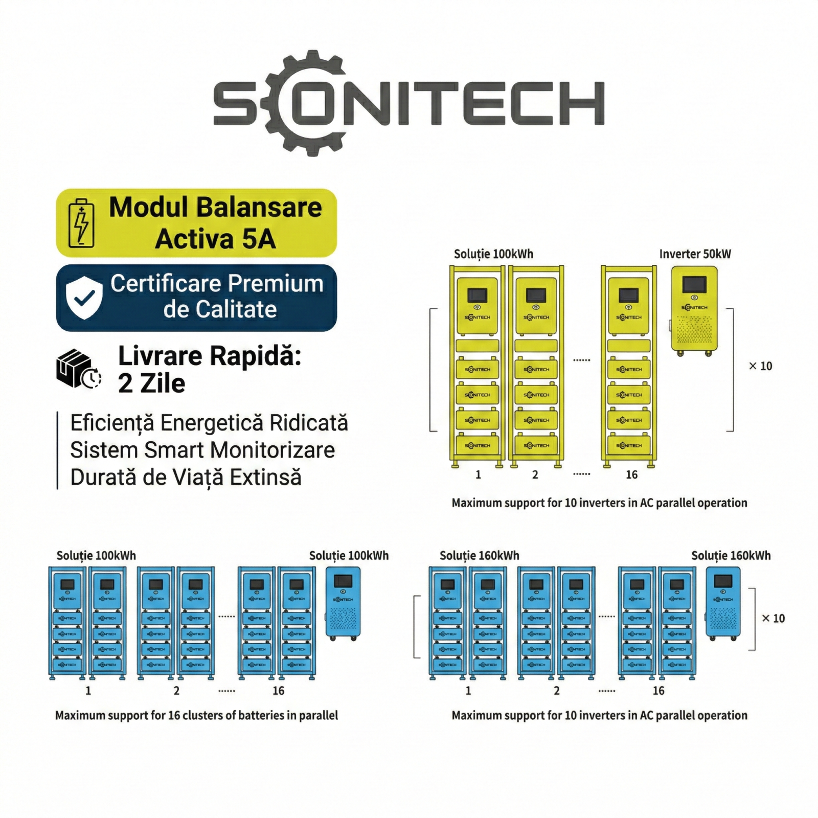 • Modularitate: Design modular pentru instalare flexibilă și extindere ușoară