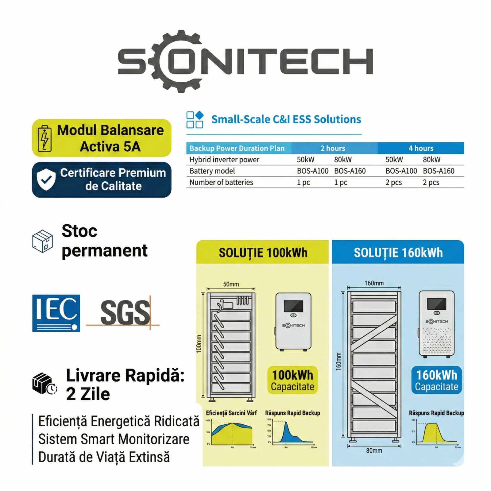 Sistemul este ideal pentru integrare în soluții de stocare energetică inteligente, asigurând funcționare fiabilă în sistemele on-grid și off-grid.