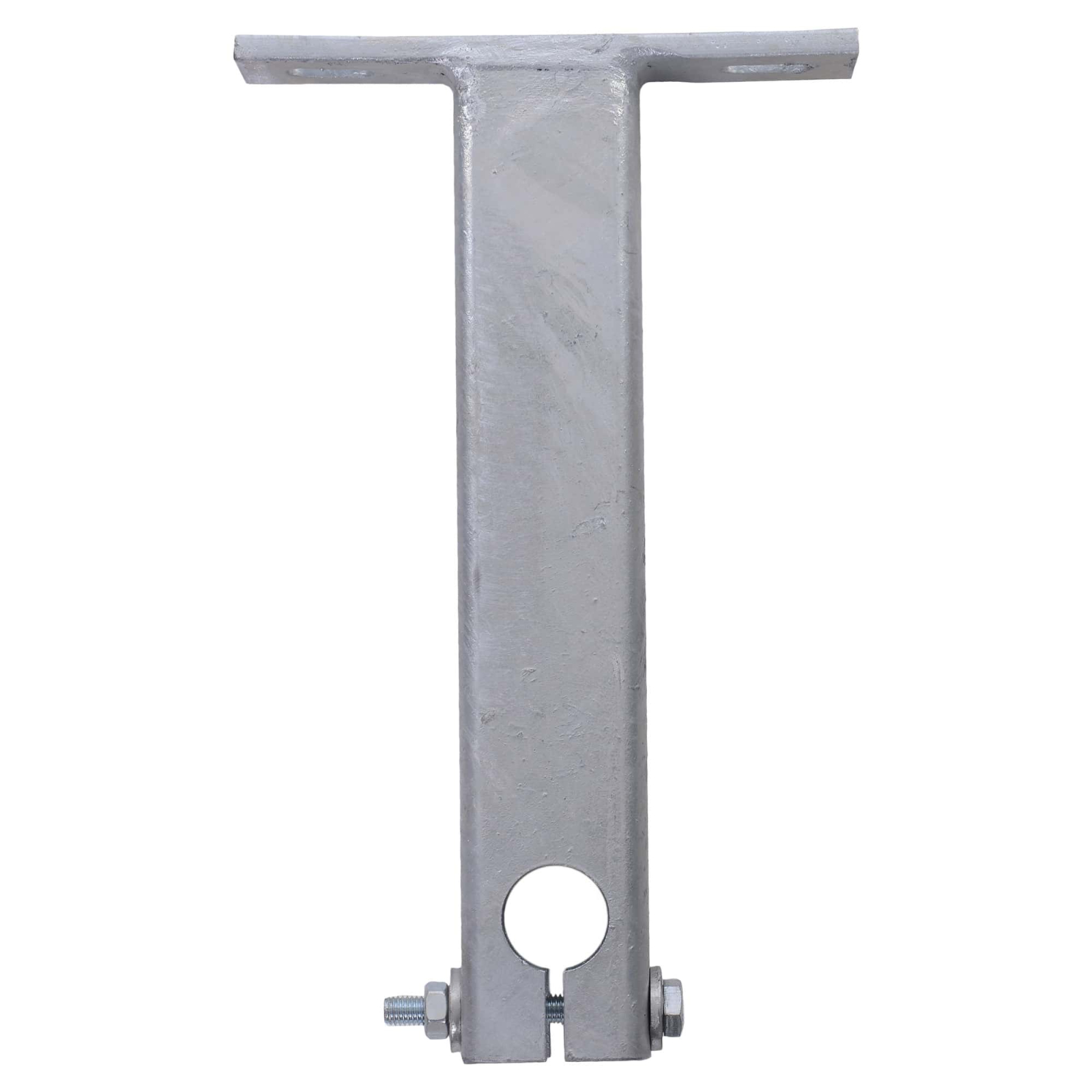 Consolă cu talpă orizontală 250mm pentru catarg bază Φ48,3mm — sistem paratrăsnet PDA Integrat Electric. Oțel galvanizat, rezistență la coroziune. Montaj pe suprafețe orizontale: plăci de beton, grinzi, coronamente. Compatibilă exclusiv cu catargul bază Φ48,3mm (108C). Fabricat în România.