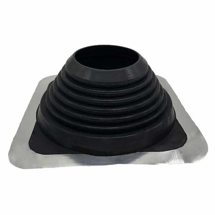 Conul se taie la diametrul dorit din trepte marcate (Φ6-140mm), se introduce pe catarg înainte de montare și se fixează etanș pe suprafața acoperișului. EPDM flexibil compensează dilatările termice și suprafețele ușor neregulate.